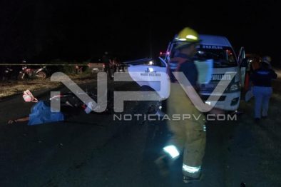 En fuerte accidente automovilístico, perdió la vida una mujer que viajaba a bordo de una motocicleta, junto con otra persona que se dio a la fuga, luego de que chocaron de frente contra un taxi colectivo de la ruta San Juan-Nuevo Vallarta, resultando además varias personas heridas, que fueron auxiliadas por los elementos de los servicios de emergencias y llevadas a recibir atención médica a un hospital.