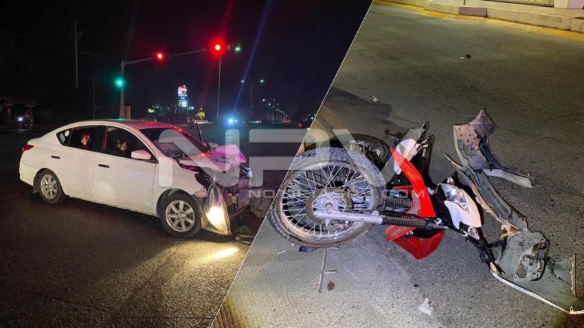 Fuerte accidente entre una motocicleta y un auto compacto, se registró sobre el Boulevard Rivera Nayarit, a la altura de los semáforos de Tondoroque, en donde el saldo fue de dos personas lesionadas de consideración, mismas que fueron llevadas a un hospital.