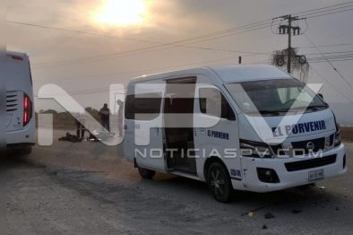 Inmediatamente se trasladaron al sitio indicado los paramédicos y Bomberos de Protección Civil Municipal, al mando del comandante Sergio García, quienes al arribar se percatan del accidente, observando que ahí estaba la persona lesionada y a un lado una motocicleta Izuka, tipo Cross, con la que se impactó el conductor contra una Urvan, Nissan, NP350, de color blanco, con el número económico GCBB-580 y placas de circulación 66-03-MDE del transporte público al servicio de taxi colectivo con sitio en El Porvenir, Nayarit.