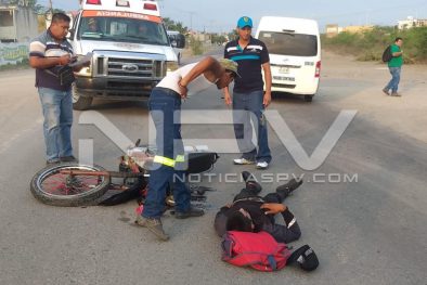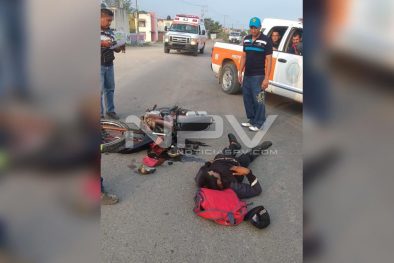 Motociclista resultó lesionado tras chocar contra un taxi colectivo por la carretera a San Juan de Abajo, siendo auxiliado por paramédicos y Bomberos de Protección Civil Municipal, quienes luego de brindarle los primeros auxilios, lo trasladaron a recibir atención médica a un hospital, ya que su estado de salud era delicado.