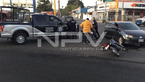 Los vehículos involucrados fueron una motocicleta de la marca Italika en color negro sin placas de circulación y un vehículo de la marca Volkswagen tipo Vento en color gris con placas de circulación del estado de Nayarit.