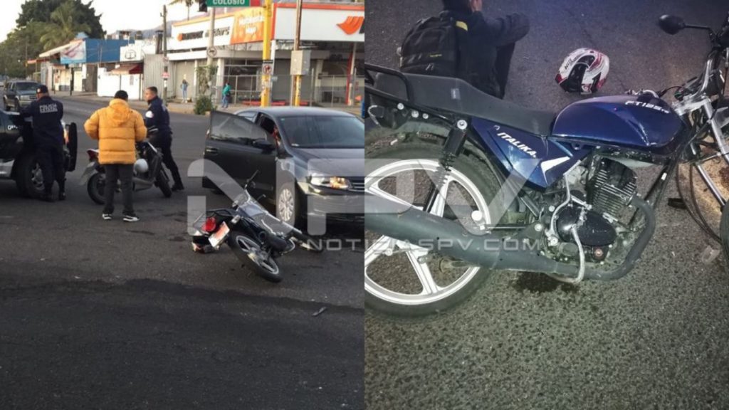 Los vehículos involucrados fueron una motocicleta de la marca Italika en color negro sin placas de circulación y un vehículo de la marca Volkswagen tipo Vento en color gris con placas de circulación del estado de Nayarit.