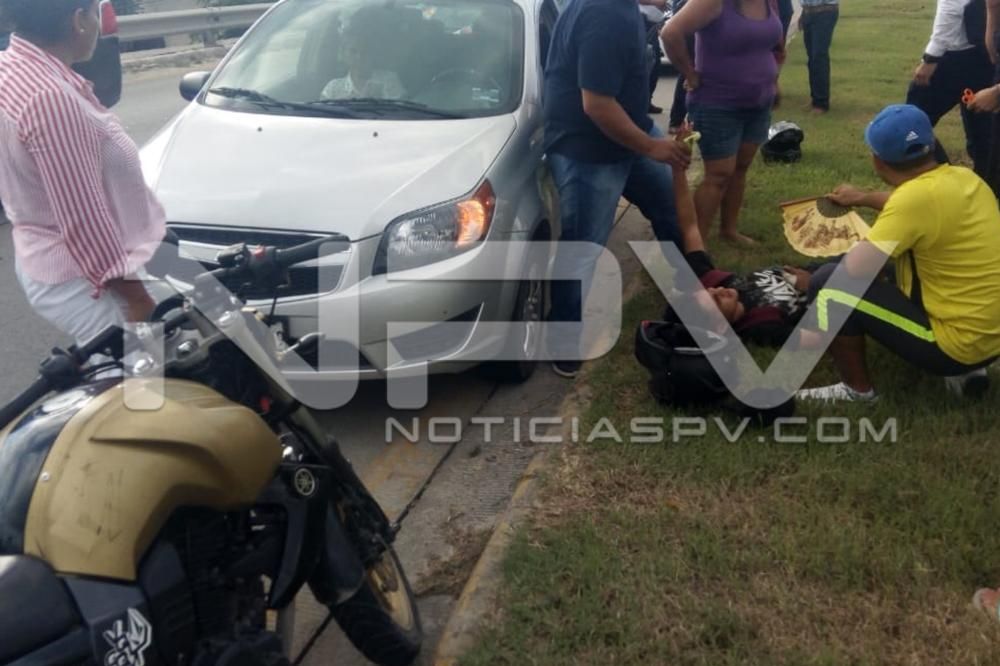Un adolescente resultó lesionado tras chocar en la motocicleta que conducía, contra un auto, causando daños también a una camioneta al salir proyectado el vehículo de dos llantas, haciéndose cargo de tomar nota los agentes de la Policía Vial de Bahía de Banderas.
