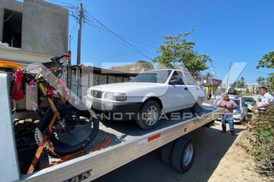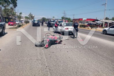 Se trata de un auto Nissan, tipo Tsuru, con placas RGG-59-21, de Nayarit, que conducía una mujer del Sindicato del SUTSEM, identificada con el nombre de Violeta Ramírez, de quien se dio a conocer que al parecer le cortó la circulación a una motocicleta Veloci, color rojo con negro, tipo Ceverus, que conducía un joven de nombre Edgar Antonio Cárdenas, de 20 años, con domicilio en Valle de Banderas, quien resultó lesionado.