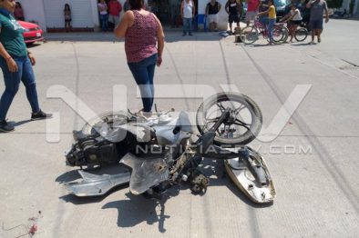 Del accidente tomaron nota los agentes de Tránsito, quiénes fueron enterados por parte de algunos testigos que presenciaron el choque entre un auto Kia, tipo Rio, de color Rojo, con las placas de circulación JPH-98-97 del estado de Jalisco y la motocicleta Honda, de color gris, tipo110, con numero de placas JLH-35, que ambos vehículos iban a exceso de velocidad y que ninguno de los dos hizo alto en el cruce de las calles, provocando el percance que arrojó cuantiosos daños materiales.