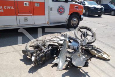 Fuerte accidente se registró entre una motocicleta y un auto, donde resultó un joven lesionado, quien fue revisado por elementos de los servicios de emergencias que lo trasladaron a recibir atención médica a un hospital.