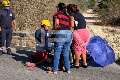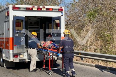Joven motociclista resultó lesionado al derrapar y chocar contra un machuelo cuando circulaba en una moto por la carretera del camino viejo en el tramo San Juan-Valle de Banderas, mismo que fue auxiliado por los Paramédicos de Protección Civil, quienes lo llevaron a recibir atención médica al hospital de San Pancho.