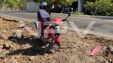 En su trayecto el motociclista rueda en el pavimento por varios metros y esto lo salvó de no ser atropellado por un camión de pasajeros que arrolló la moto y la dejó destrozada, dándose a la fuga el camionero con la unidad del transporte público, sin que hasta el momento se sepa de su paradero.