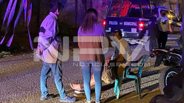 Hasta ese sitio se trasladaron los oficiales de la Policía Vial, a bordo de sus unidades llegando también al lugar una ambulancia de Protección Civil Municipal, donde los Paramédicos se dieron a la tarea de brindarme los primeros auxilios a un masculino que momentos antes había derrapado en una motocicleta.