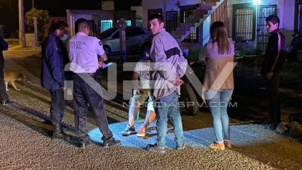 Un masculino resultó con lesiones en su cuerpo tras caer de la motocicleta que conducía, luego de que se le atravesó un perro que salió corriendo de un domicilio, al que escondieron sus amos en su casa para evadir su responsabilidad.