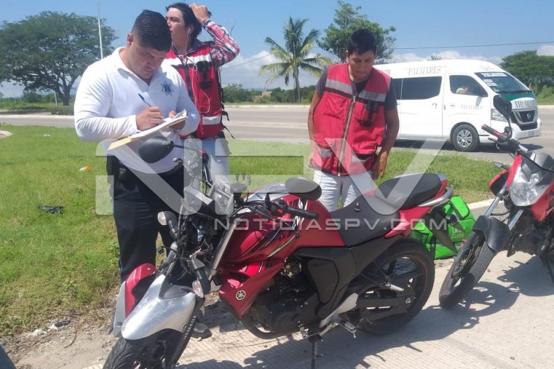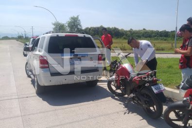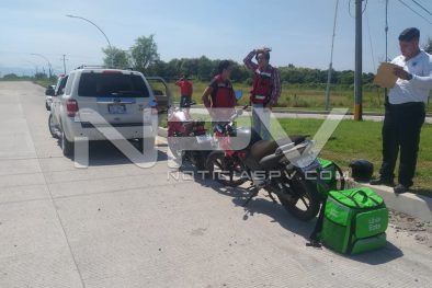 Motociclista de Uber Eats, resultó con algunos raspones y excoriaciones en su cuerpo luego de participar en un accidente ocurrido por la carretera de Mezcales a San Vicente, donde chocó contra una camioneta, tomando nota los agentes de Tránsito municipal, quienes les dieron los pasos a seguir a los involucrados.