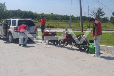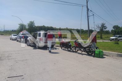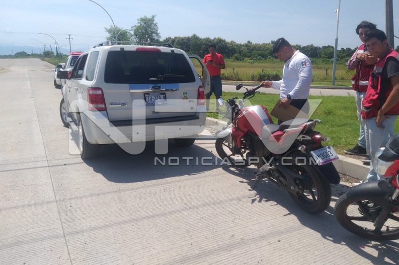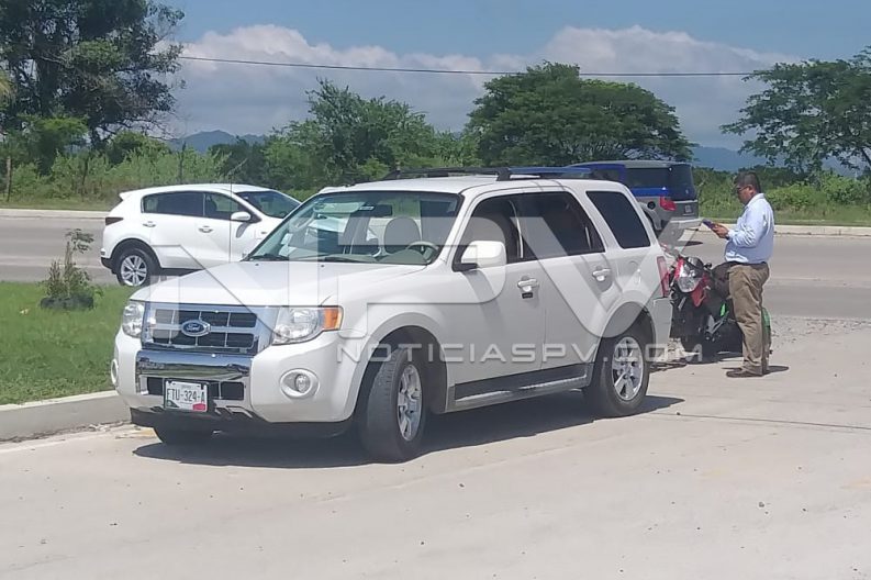 Al sitio indicado se dirigieron los agentes viales a bordo de una unidad radio patrulla, quienes al arribar revisaron el área y se dieron cuenta de que ahí donde inicia la avenida Federaciones, en el cruce con la avenida Emilio M. González, se encontraban una camioneta de la marca Ford, tipo Escape, de color blanco y una motocicleta de la empresa » Uber Eats», de color tinto, apreciándoseles daños materiales y al motociclista algunas lesiones, aunque no de gravedad.