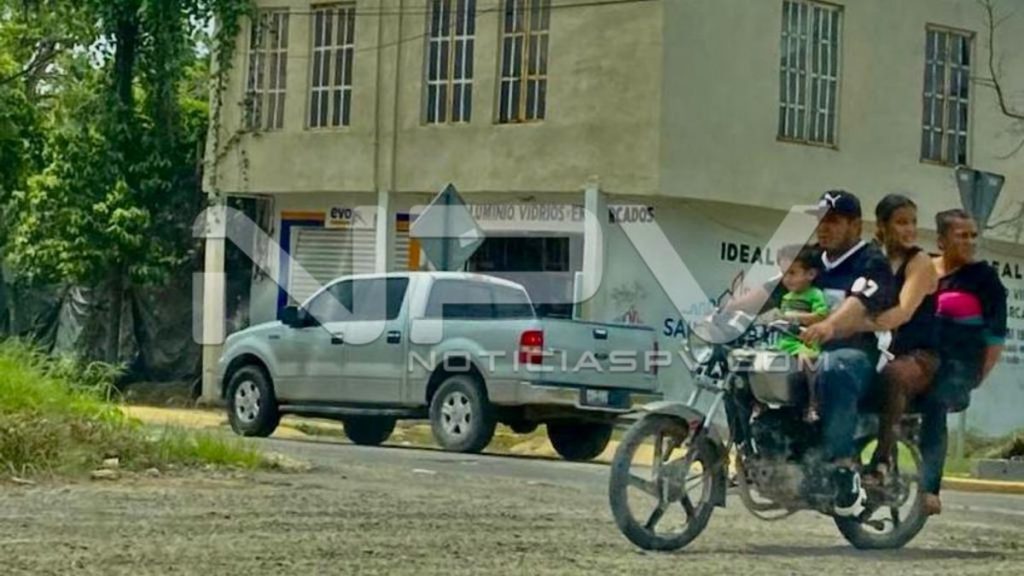 En la imagen que un automovilista de esa comunidad envió hoy a NoticiasPV y NoticiasPvNayarit, se observa como en primera instancia los 4 ocupantes que van a bordo de la moto, ninguno trae cubrebocas, lo cual es un signo de posible contagio de coronavirus.