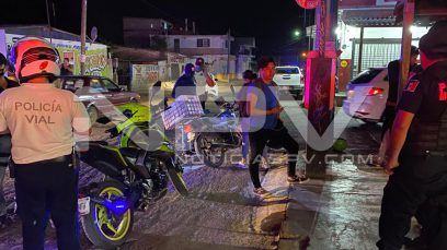Ahí en ese sitio los elementos de vialidad le marcaron el alto al conductor de una motocicleta Italika, con placas X09AK, quien iba acompañado de una joven mujer a la que ya se le apreciaban algunos.meses de embarazo.