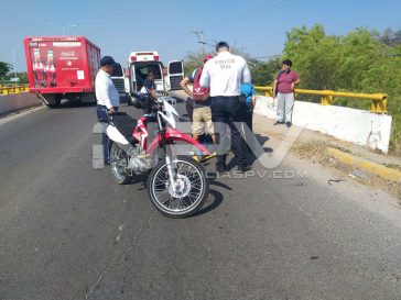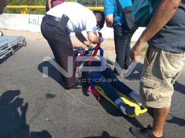 De los hechos se conoce que ocurrieron la tarde de este sábado 18 de mayo, a la altura del puente Las Mesas, cuando un hombre y una mujer circulaban por el carril de Mezcales hacia San Vicente, sobre la avenida Emilio M. González, a bordo de una motocicleta de la marca Honda, de color Rojo y blanco, modelo 2018, con las placas de circulación X90PR, del estado de Nayarit, en la que sufrieron una descompostura y cayeron al pavimento luego de derrapar el vehículo de dos llantas.