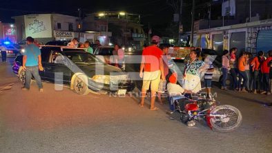 Dos masculinos que iban a bordo de una motocicleta resultaron lesionados luego de participar en un accidente donde estuvo involucrado un auto