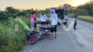 Vecina de José del Valle resultó lesionada luego de que derraparon en la motocicleta que iba de acompañante con su esposo, en la que circulaban por la carretera del Camino Viejo de Valle a Bucerías, argumentando al conductor que perdió el control por sacarle a un bache, lo que ocasionó que cayeran al pavimento donde quedaron tirados, siendo auxiliados por Paramédicos de Protección Civil, quienes llevaron a la fémina a recibir atención médica a un hospital.(José Luis Preciado/NoticiasPV.Com)
