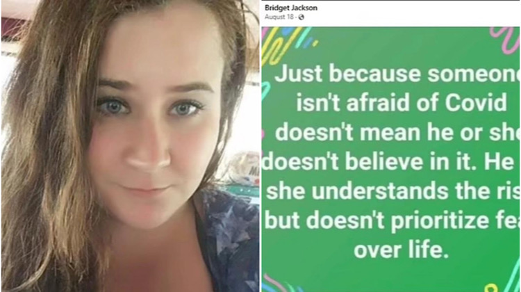 Como informa The Sun, Bridget Jackson apoyaba rutinariamente opiniones antivacunas en Facebook, al mismo tiempo que criticaba el uso de cubrebocas en lugares públicos.