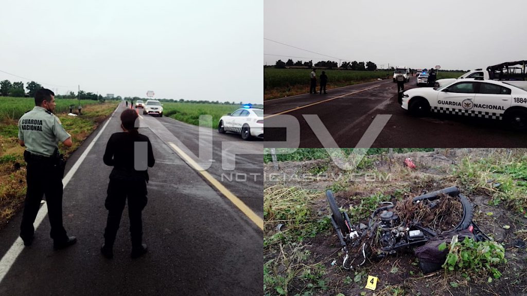 En el lugar el Sub-Inspector de la Guardia Nacional (División Caminos), Francisco Javier González, dio a conocer que se trata efectivamente de un accidente donde participa una camioneta Dakota, de color negro, misma que se dio a la fuga hacia Novillero, quedando en el lugar una motocicleta sin marca visible, pues quedó destrozada, apreciándose a unos metros una persona sin vida.
