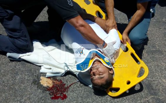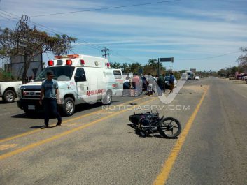 Al sitio indicado se dirigieron los elementos de Protección Civil del Estado, con base regional en Rincón de Guayabitos, a bordo de las unidades a cargo del paramédico Antonio Meza Uribe, quienes al arribar al lugar se dan cuenta que se trata efectivamente de un accidente entre una motocicleta y una camioneta, teniendo a la vista a un masculino lesionado, quien estaba tirado en la carpeta asfáltica.