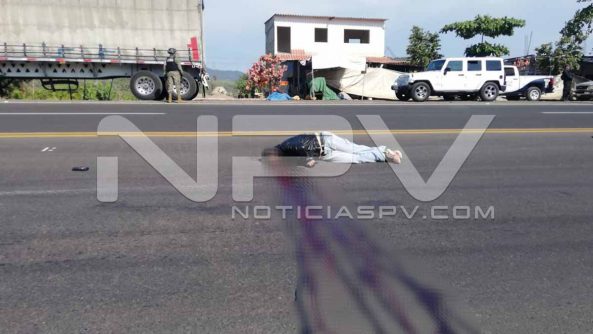 Una persona del sexo masculino perdió la vida a la altura del poblado Puerta de Lima, luego de chocar con la motocicleta que conducia, contra un vehículo, esto sobre la carretera federal 200, Tepic-Puerto Vallarta.