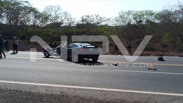 Una persona del sexo masculino perdió la vida a la altura del poblado Puerta de Lima, luego de chocar con la motocicleta que conducia, contra un vehículo, esto sobre la carretera federal 200, Tepic-Puerto Vallarta.