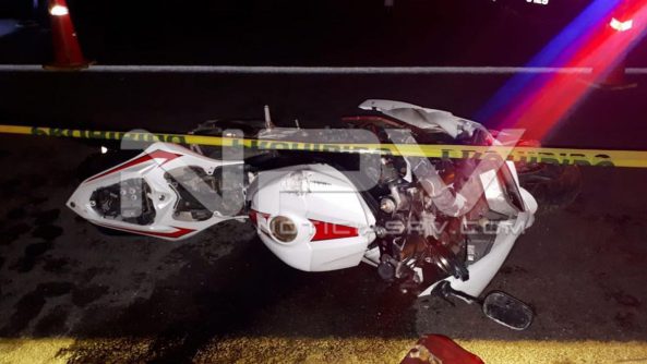 Las autoridades policíacas arribaron al lugar indicado para atender el reporte y se dieron cuenta de que efectivamente ahí estaba la motocicleta tirada en la carretera y con daños considerables observándose en el lugar huellas de derrapamiento de aproximadamente 100 metros con dirección de oriente a Poniente.
