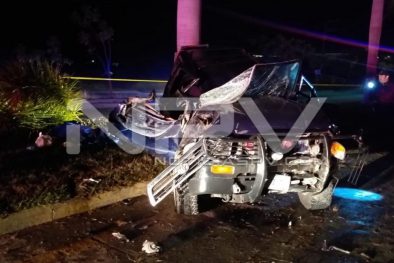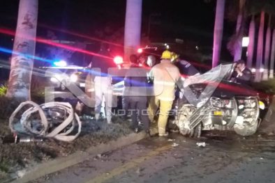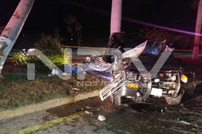Fatal volcadura se registró sobre el Boulevard Riviera Nayarit en la zona de Flamingos en Bucerías, donde una camioneta chocó contra las palmeras quedando totalmente destrozada, resultando lesionadas tres personas y una más murió en el lugar.
