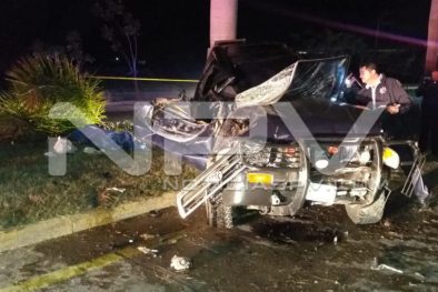 Fatal volcadura se registró sobre el Boulevard Riviera Nayarit en la zona de Flamingos en Bucerías, donde una camioneta chocó contra las palmeras quedando totalmente destrozada, resultando lesionadas tres personas y una más murió en el lugar.