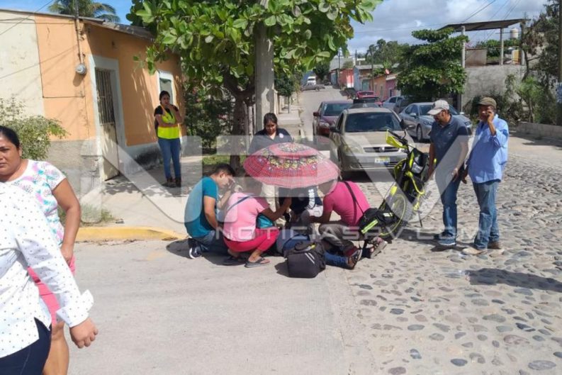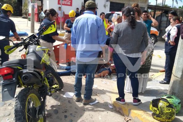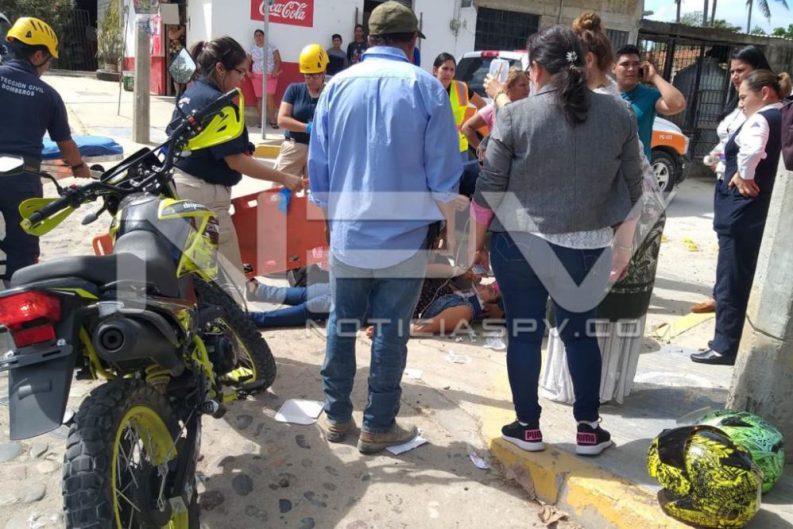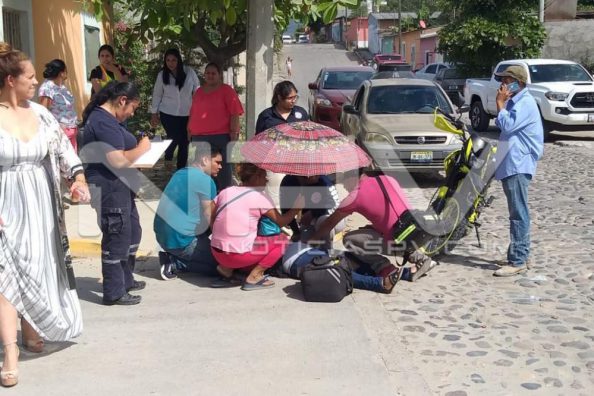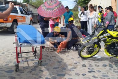 Aparatoso encontronazo entre una motocicleta y una cuatrimoto se registró poco antes de las 11de la mañana de este miércoles en el poblado de Valle de Banderas, municipio de Bahía de Banderas, Nayarit, resultando lesionada una mujer que además cuenta con 6 meses de embarazo.