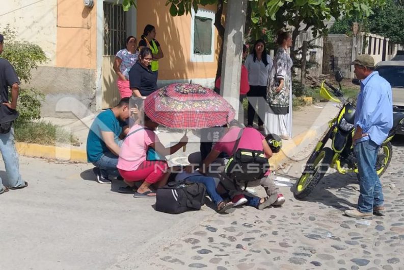 Aparatoso encontronazo entre una motocicleta y una cuatrimoto se registró poco antes de las 11de la mañana de este miércoles en el poblado de Valle de Banderas, municipio de Bahía de Banderas, Nayarit, resultando lesionada una mujer que además cuenta con 6 meses de embarazo.