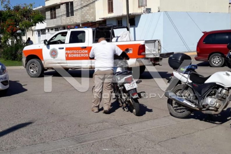 Una persona del sexo femenino que conducía una motocicleta, resultó lesionada tras chocar contra un auto que le cortó la circulación, en hechos ocurridos en el fraccionamiento Valle Dorado, la cual fue auxiliada por paramédicos de una empresa privada quienes la llevaron a recibir atención médica a un hospital, haciéndose cargo de tomar nota del accidente, los agentes de la Policía Vial de Bahía de Banderas.