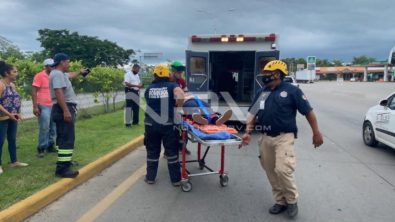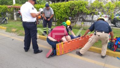 Con lesiones de consideración resultó una joven de 28 años aproximadamente, la cual al circular a bordo de su motocicleta sobre el Boulevard Rivera Nayari,t perdió el control y se estampó contra el machuelo, quedando inconsciente a consecuencia del fuerte golpe que sufrió.