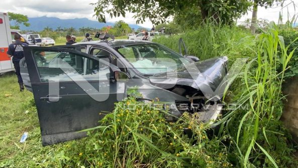 Una mujer resultó lesionada tras chocar su auto contra un muro de concreto, luego de perder el control del volante cuando circulaba por la carretera de ingreso al poblado de San Juan de Abajo, la cual fue auxiliada por paramédicos y bomberos, quienes la rescataron del vehículo y luego la trasladaron a recibir atención médica a un hospital.