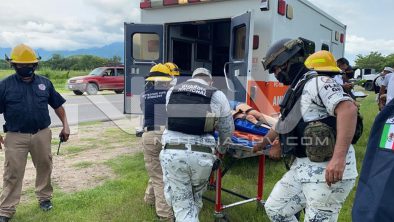 Al sitio indicado arribaron los oficiales de la policía vial, a bordo de sus unidades a cargo del comandante Samuel Osorio Santos, quienes informan que ahí ya se encuentra personal de la Guardia Nacional, resguardando el área y a una mujer que resultó lesionada, arribando también los paramédicos y bomberos de Protección Civil Municipal, para auxiliar a la fémina que se apreciaba atorada de sus pies.