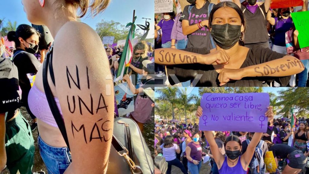 Gritos, brincos, consignas, marcha y mitin, hubo de todo en la manifestación M8 de las mujeres hoy en Puerto Vallarta.