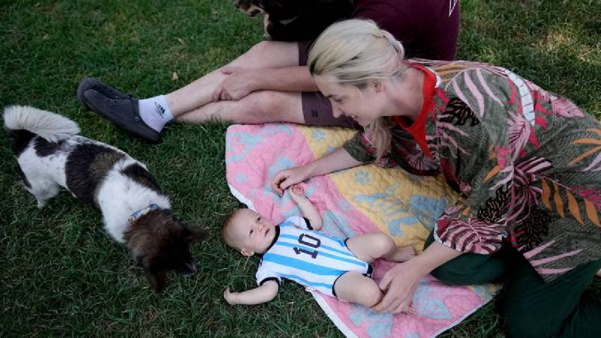 Alla Prigolovkina y su esposo Andrei Ushakov aguardaron que el sol les diera algo de tregua para dar un paseo junto a su pequeño bebé Lev Andrés por un parque de la provincia de Mendoza, en el oeste Argentina. La pareja rusa, con su hijo y sus perros Cometa y Santa, saluda amablemente a sus vecinos antes de recostarse en una manta sobre el césped, como si esa hubiese sido siempre su realidad.