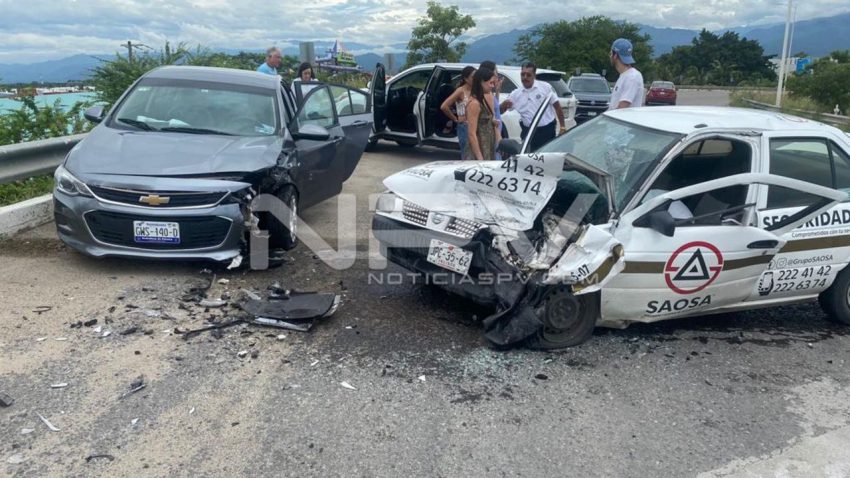 Brutal choque de frente se registró la tarde de este domingo en el puente desnivel del ingreso hacia Nuevo Nayarit, en donde se vio involucrada una patrulla de Seguridad Privada de la empresa Saosa y un auto particular.