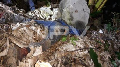 De los hechos informaron las autoridades policíacas que fueron alertados esta madrugada de viernes en torno al hallazgo de un cuerpo sin vida, mismo que estaba en una platanera con una enorme piedra encima.
