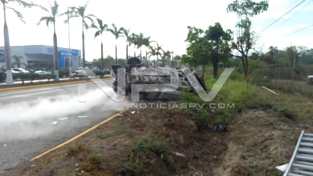 Se informó que la pipa presentaba 3 fugas considerables de gas, luego de la volcadura que se registró sobre el boulevard Riviera Nayarit, resultando lesionado de consideración su conductor, detectando además el personal de Protección Civil, que aproximadamente 100 metros detectó huellas del accidente, es decir, la pipa iba en exceso de velocidad.