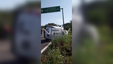 En su entrevista con las autoridades, manifestó el conductor de la Toyota, Hilux, que él se trasladaba por su carril con dirección de norte a sur, cuando de pronto observó que venía invadiendo carril contrario el vehículo tipo Panel, por lo que le prendió las luces para que el chofer reaccionara y retomara su carril y al ver que no se reincorporava, trató de esquivarlo para no chocar, pero alcanso a pegarle en la parte trasera del lado derecho proyectándolo contra el poste de la estructura metálica que sirve de señalamiento que indica ruta de Autopista Tepic-Mazatlán.