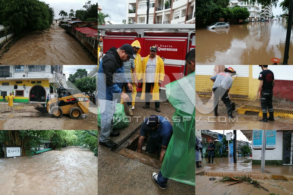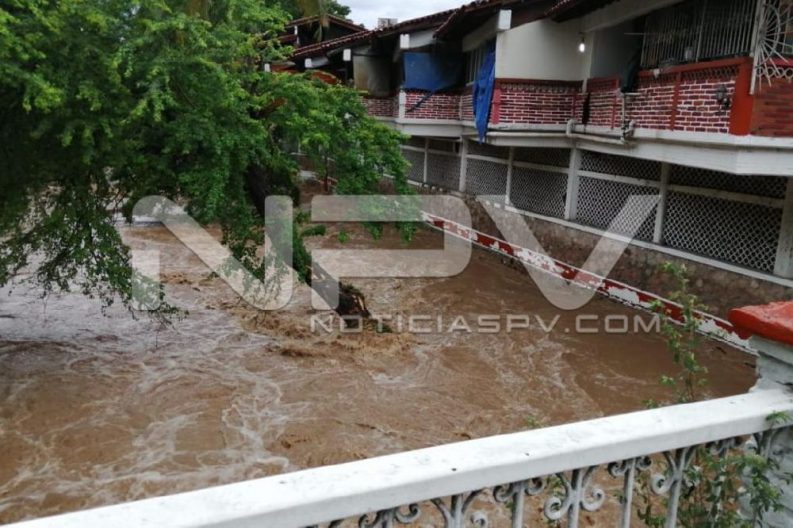 Las lluvias dejaron desbordamiento en el río Cuale, un auto fue arrastrado por la corriente, se dio el rescate de una persona a la altura del puente Maquío, inundaciones en calles y avenidas, lo mismo que en camino y en el poblado de Boca de Tomatlán.