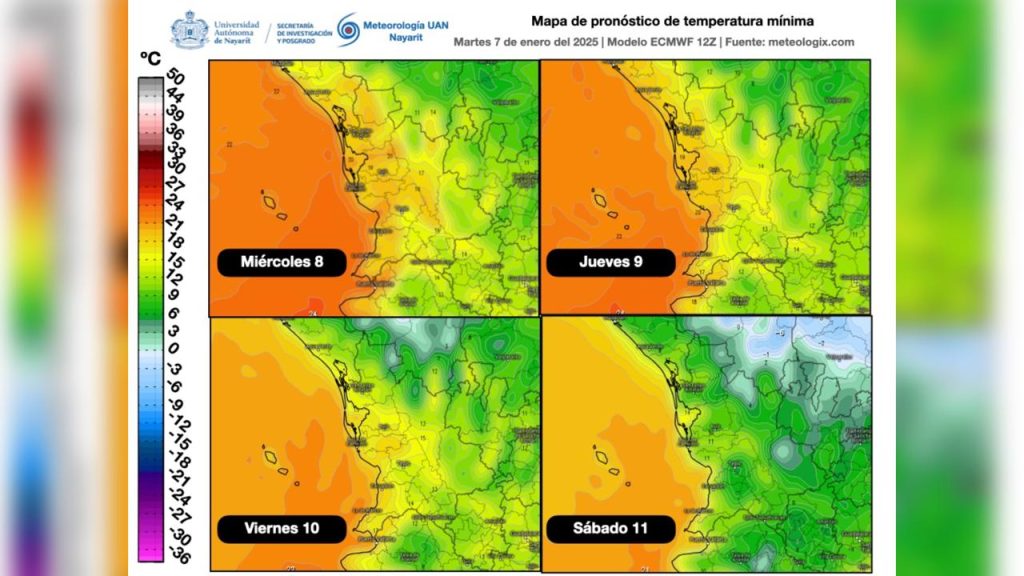 El meteorólogo Jerusalén Ceja, de la Secretaría de Investigación y Posgrado de la Universidad Autónoma de Nayarit, informó sobre un temporal invernal que impactará al estado desde este miércoles 8 hasta el domingo 12 de enero. Este fenómeno será provocado por una Depresión Aislada en Niveles Altos (DANA) sobre el noreste del país, en combinación con la corriente en chorro polar y subtropical, así como una masa de aire ártico que impulsa el frente frío número 21.