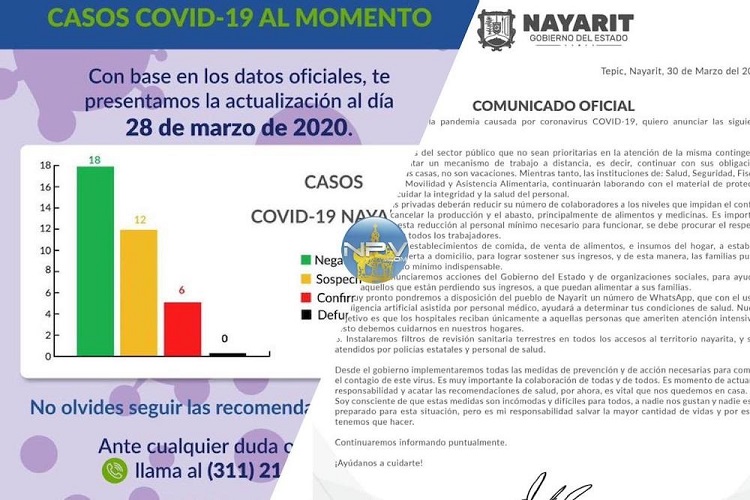 El Gobernador de Nayarit, confirmó minutos antes de las 15:00 horas de este lunes 30 de marzo del 2020, el séptimo caso de contagio en su Estado.