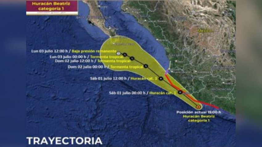 A las 15:00 horas, hora del centro de México, el huracán Beatriz, clasificado como categoría 1 en la escala Saffir-Simpson, se encontraba ubicado a 100 kilómetros al oeste-suroeste de Lázaro Cárdenas, Michoacán, y a 185 kilómetros al sureste de Manzanillo, Colima. Con vientos máximos sostenidos de 140 kilómetros por hora y ráfagas de 165 kilómetros por hora, se desplazaba hacia el noroeste a una velocidad de 20 kilómetros por hora.