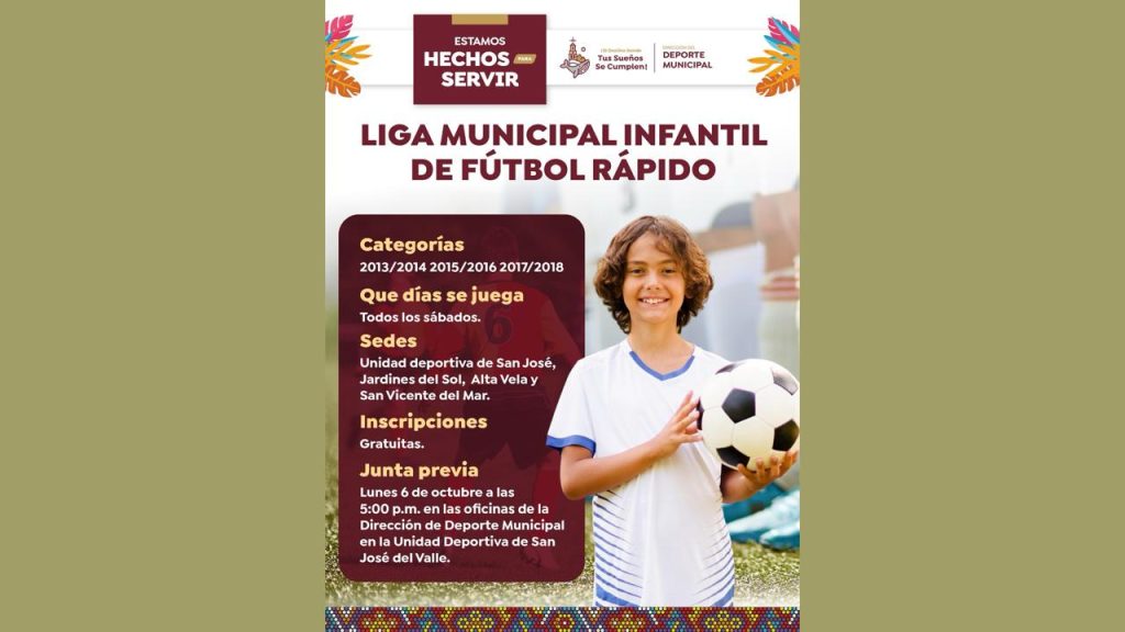 Con el objetivo de fomentar la actividad física y el talento deportivo entre los más jóvenes, la Dirección de Deporte Municipal ha anunciado oficialmente la convocatoria para la Liga Municipal Infantil de Fútbol Rápido. El torneo promete ser un espacio de sana competencia y desarrollo para niños y niñas en diversas categorías.
