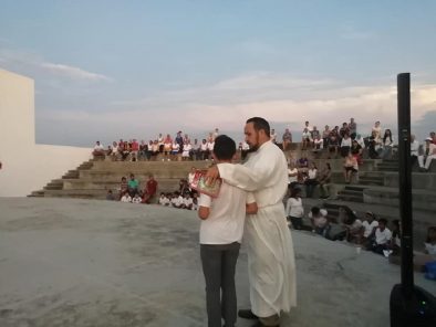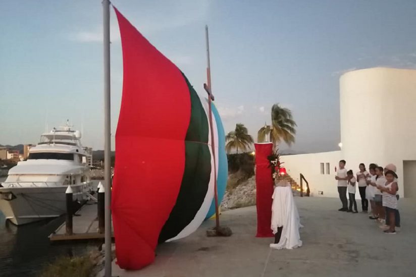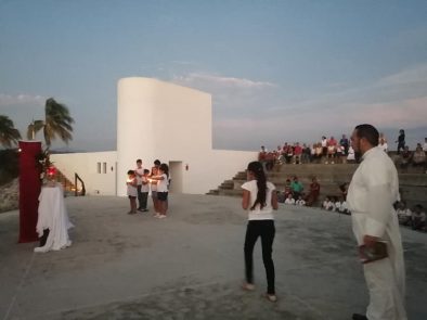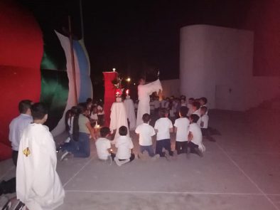 En octubre, la Iglesia Católica celebra el mes de las Misiones, mes de las misioneras y los misioneros ya que fue en octubre cuando se descubrió el continente americano, abriendo así una nueva página de la historia de la Evangelización. En todos los países es considerado como el mes de la Misión Universal y fue en este marco de celebración religiosa, auspiciado por el párroco de la Iglesia de la Santa Cruz, padre Alfonso, se convocó a los niños de la comunidad de La Cruz de Huanacaxtle, Bahía de Banderas, Nayarit, para rezar juntos el Santo Rosario por los 5 Continentes que, en esta ocasión, a solicitud del Papa Francisco, fue para pedir que paren las guerras y la violencia. El acto religioso se llevó a cabo este jueves 31 de octubre 2019 en el teatro al aire libre de la Marina Riviera Nayarit, según informa Patricia Moss, voluntaria y corista de este templo.