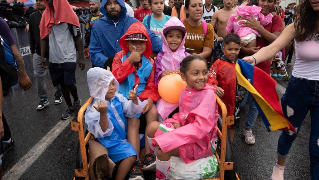 Como en caravanas anteriores, cientos de niños, niñas y bebés de brazos se trasladan con sus familias después de haber sido hacinados en pequeños cuartos a la espera de que autoridades migratorias les permitieran avanzar en su viaje.