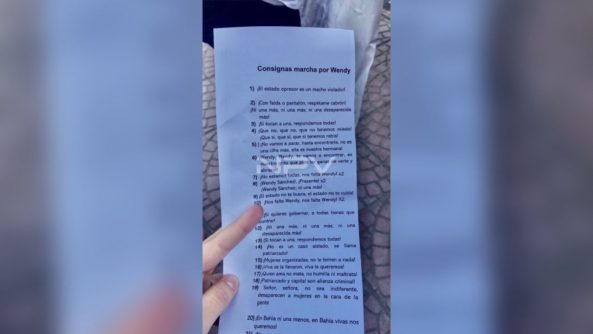 Mujeres portaron pancartas con las siguientes leyendas “no estamos todas, falta Wendy” y “las mujeres tenemos toque de queda todos los días”.
