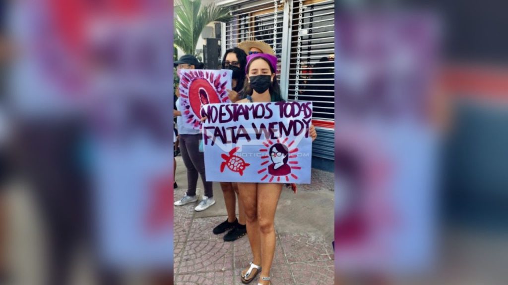 Mujeres portaron pancartas con las siguientes leyendas “no estamos todas, falta Wendy” y “las mujeres tenemos toque de queda todos los días”.